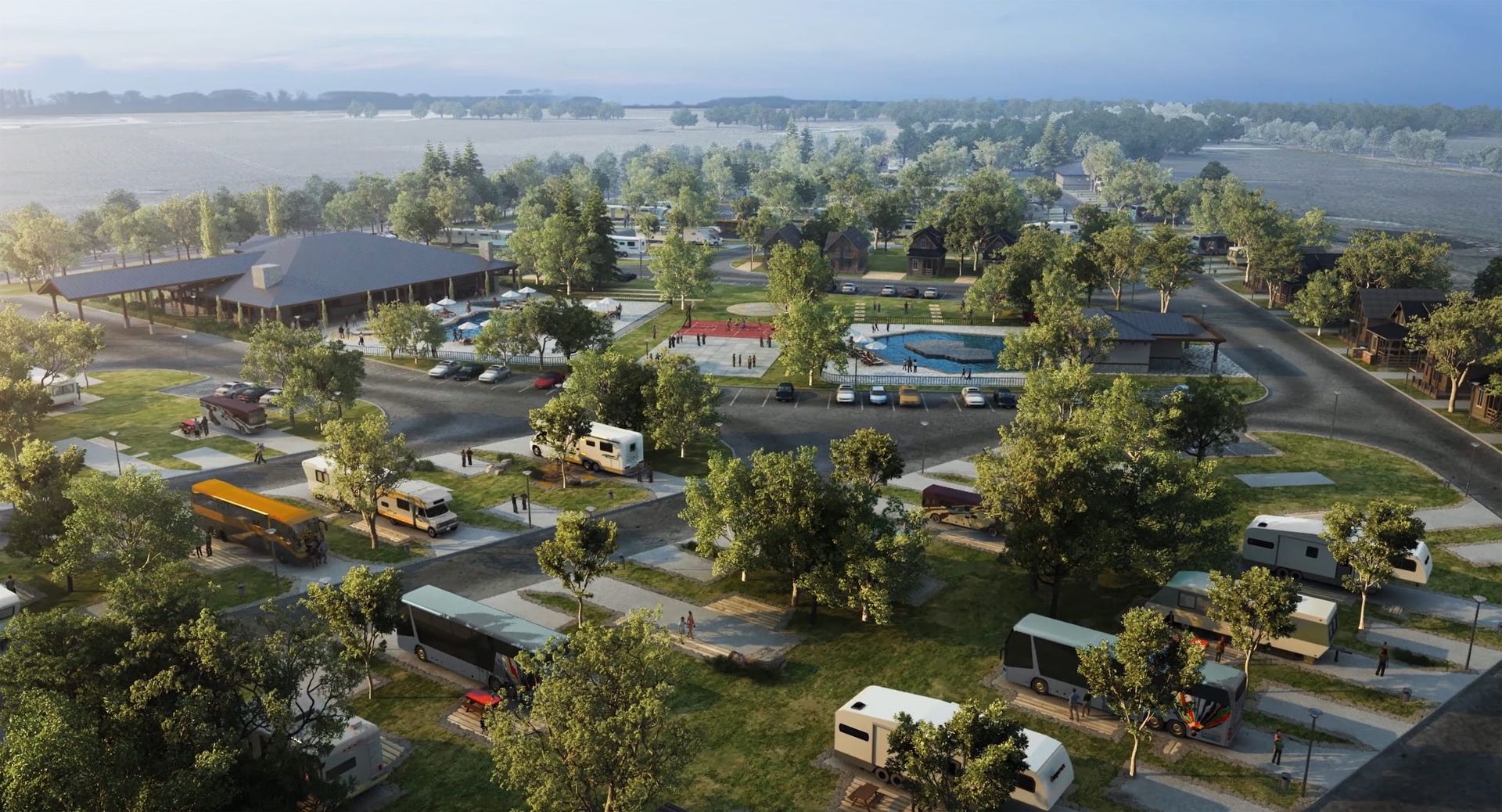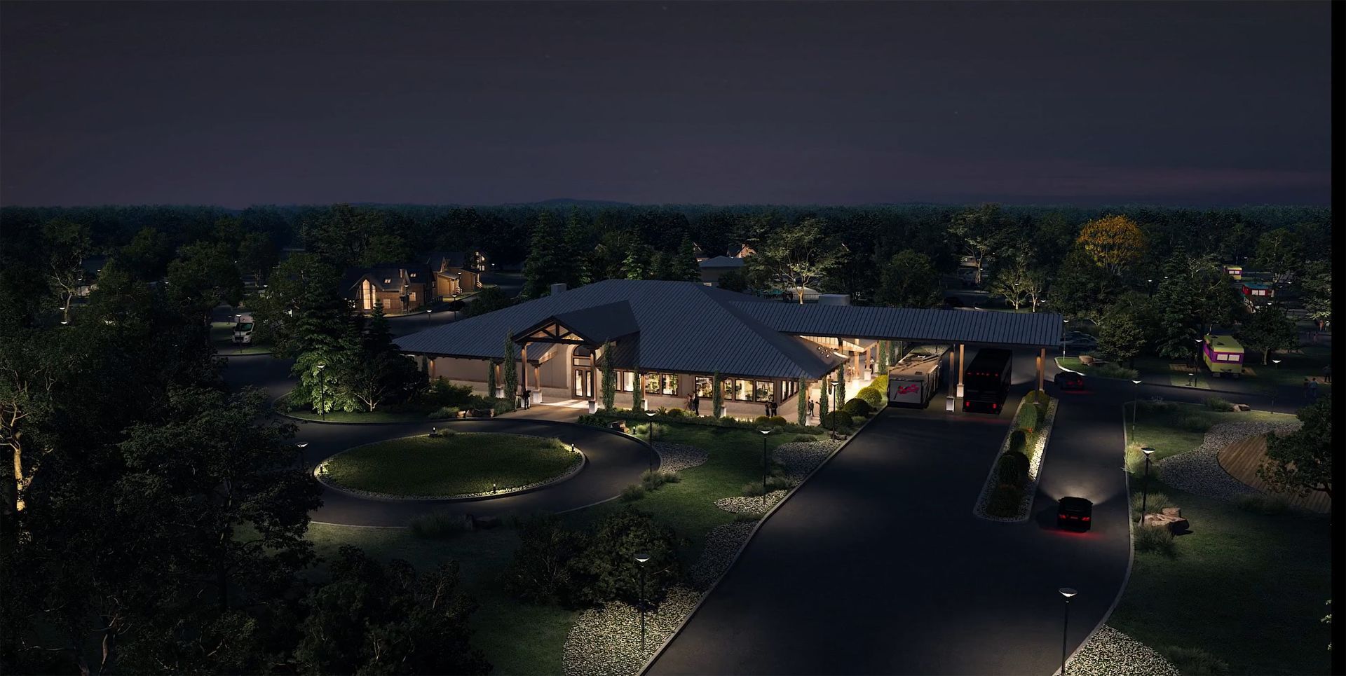 This comprehensive 17.5-acre site included 141 RV sites and various amenities. The project features a clubhouse, restaurant, camp store, pools, pavilion, maintenance facilities, laundry, and exercise areas. Our design incorporated a mechanical platform into the pitched roof with minimal visual impact, addressing both aesthetic and functional needs.