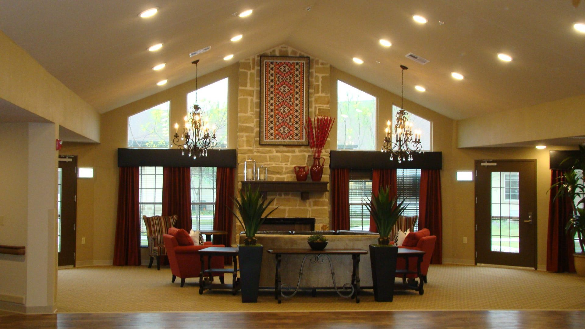 Given its proximity to the Gulf Coast, we designed the building to withstand wind gusts of up to 160 mph and incorporated impact-resistant windows throughout. The exterior features Spanish Tile roofs and cement stucco wall finishes, reflecting the area's Spanish Colonial heritage. We created an enclosed interior courtyard accessible from two large Dayrooms with Porches, providing residents with a secure outdoor space for exercise and relaxation. Inside, we designed comfortable living areas, including a large Living Area with a fireplace near the Lobby and an Activity area, to promote social interaction. We also integrated a Physical Therapy area with external access, offering comprehensive rehabilitation services for both residents and outpatients.